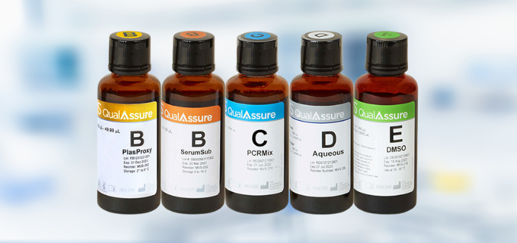 图1 这些数据描述了使用经过优化以释放10μL PlasProxy QualAssure的自动液体处理器,与不同血浆相比,所释放的体积的百分比差异。