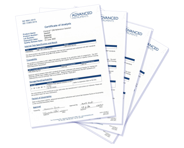 安达望的渗透压仪是经过出厂校验的。您只需在使用前用 Clinitrol™ 290参照溶液进行最少的测试来确认。